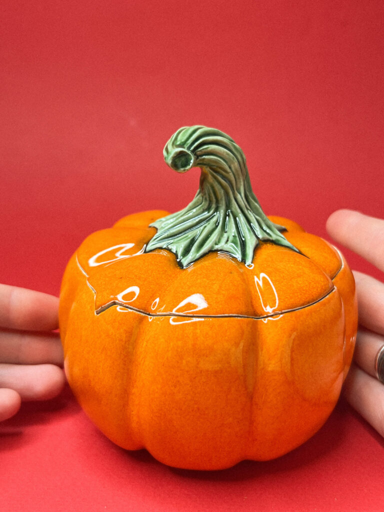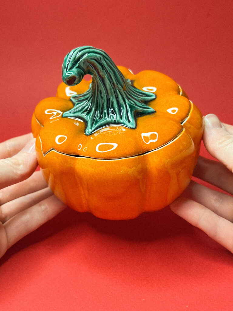 Шкатулка-тыква яркого оранжевого цвета «Осенний оберег», керамика, РФ
