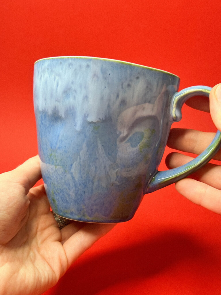 Тонкостенная, фарфоровая кружка в сине-зеленых глазурях «Ночное озеро», РФ