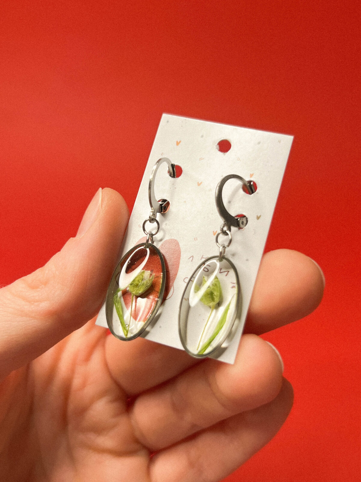 Материал: сухоцветы, ювелирная смола, металлическая фурнитура из нержавеющей стали.