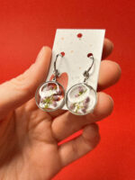 Большие серьги-окошки с сухоцветами в ювелирной смоле «Шелковая роса», РФ