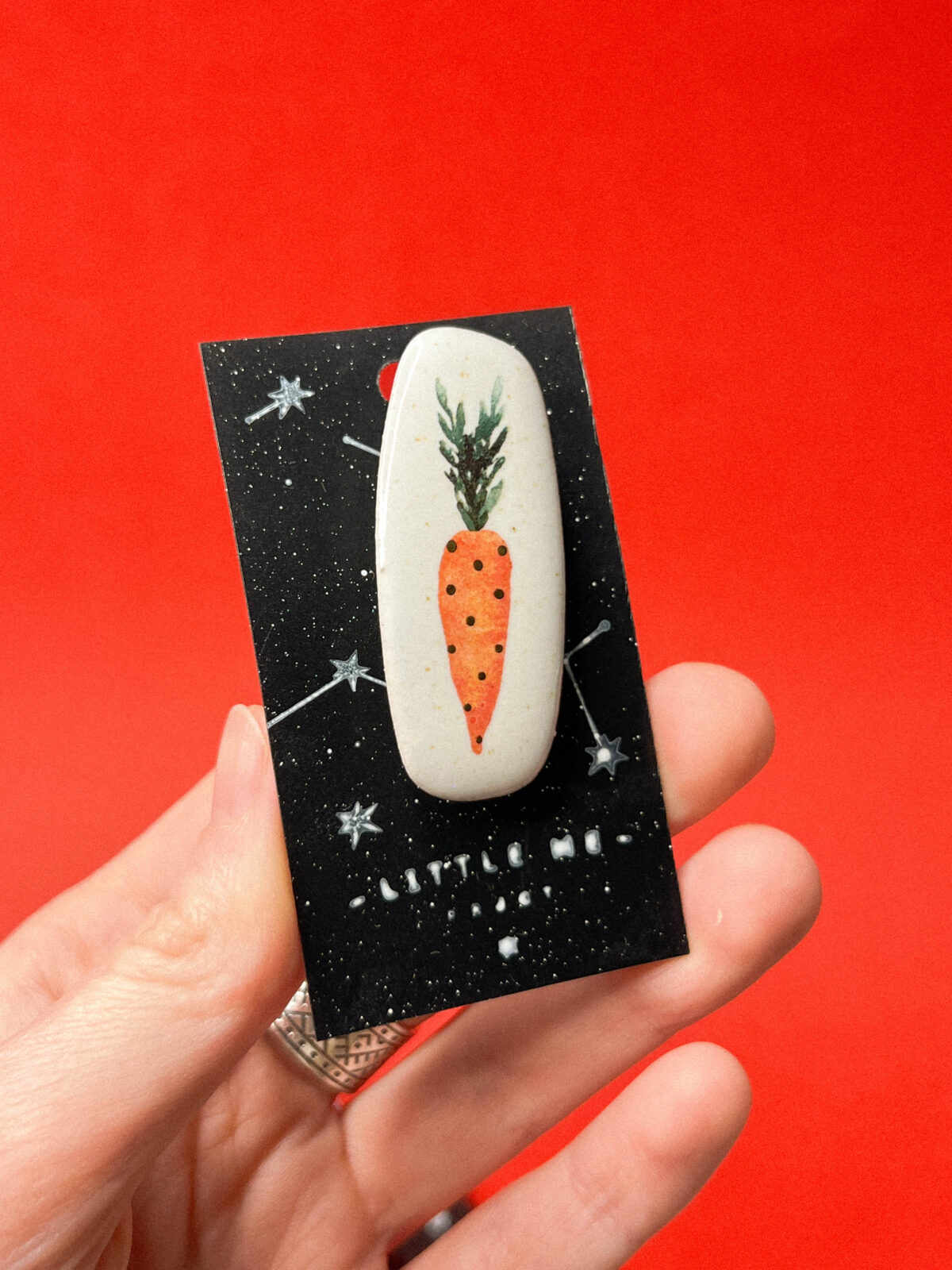 Материалы: бежевая глина, крапчатая глазурь теплого оттенка, очень надежно закрепленная металлическая застежка- булавка, золото. Авторский принт выполнен керамическими красками по глазури. Не выцветает и не стирается со временем.
