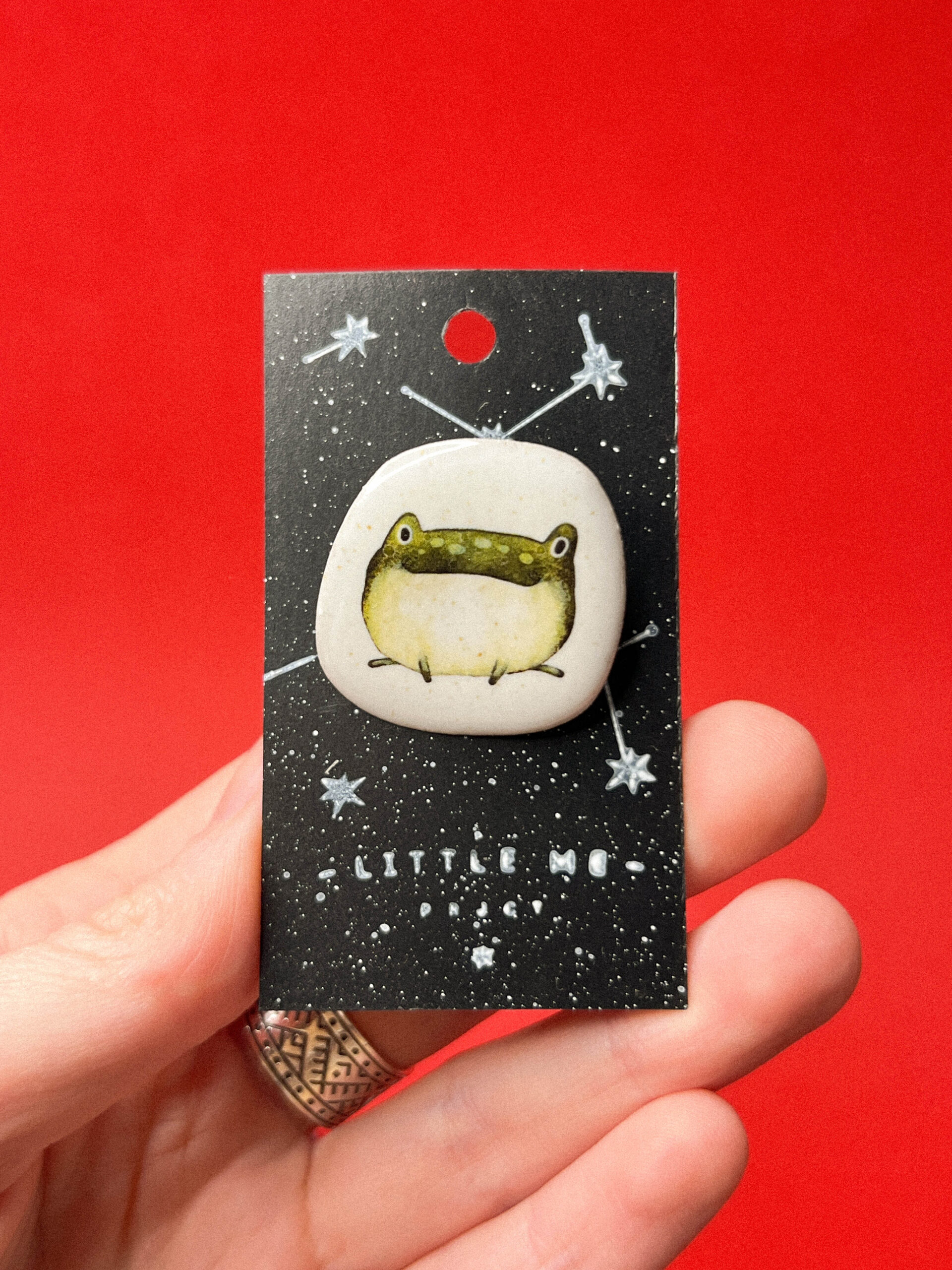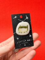 Материалы: бежевая глина, крапчатая глазурь теплого оттенка, очень надежно закрепленная металлическая застежка- булавка. Авторский принт выполнен керамическими красками по глазури. Не выцветает и не стирается со временем.