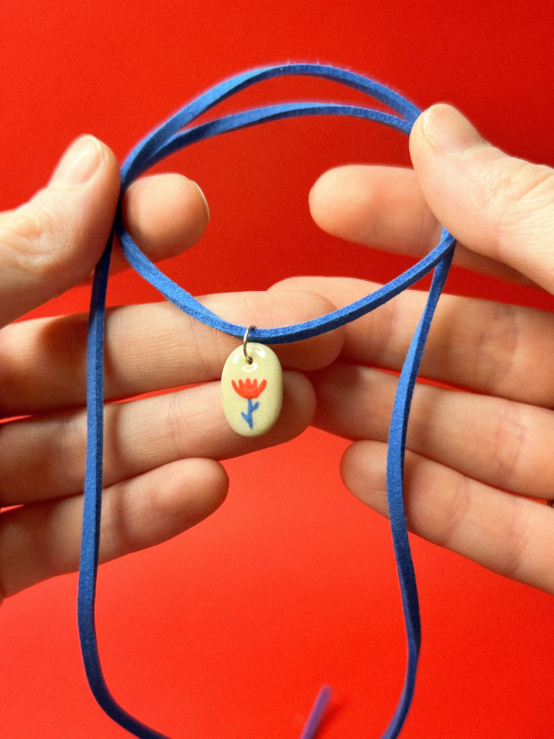 Материал: керамика, керамическая глазурь, ручная роспись, искусственная замша.