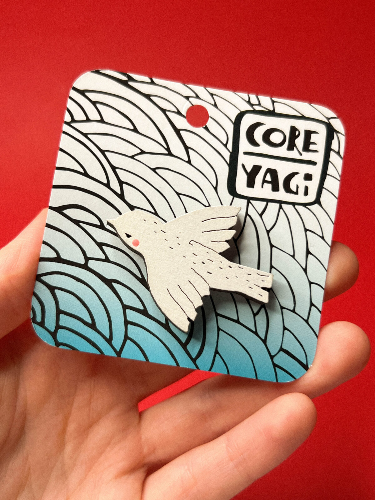 Материал: дерево, ручная роспись, акриловые краски, лак, металлическая застежка‑булавка.