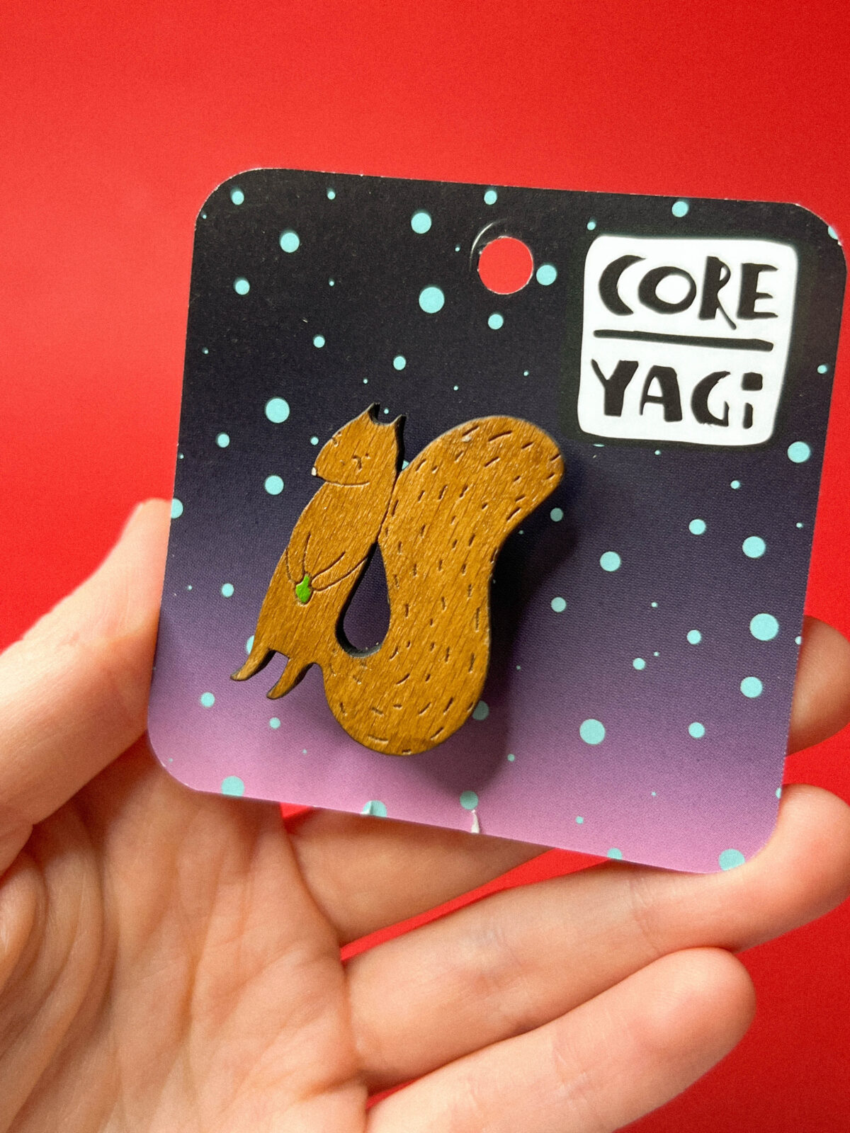 Материал: дерево, ручная роспись, акриловые краски, лак, металлическая застежка‑булавка.