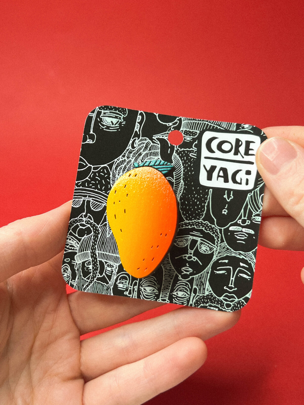 Материал: дерево, ручная роспись, акриловые краски, лак, металлическая застежка‑булавка.