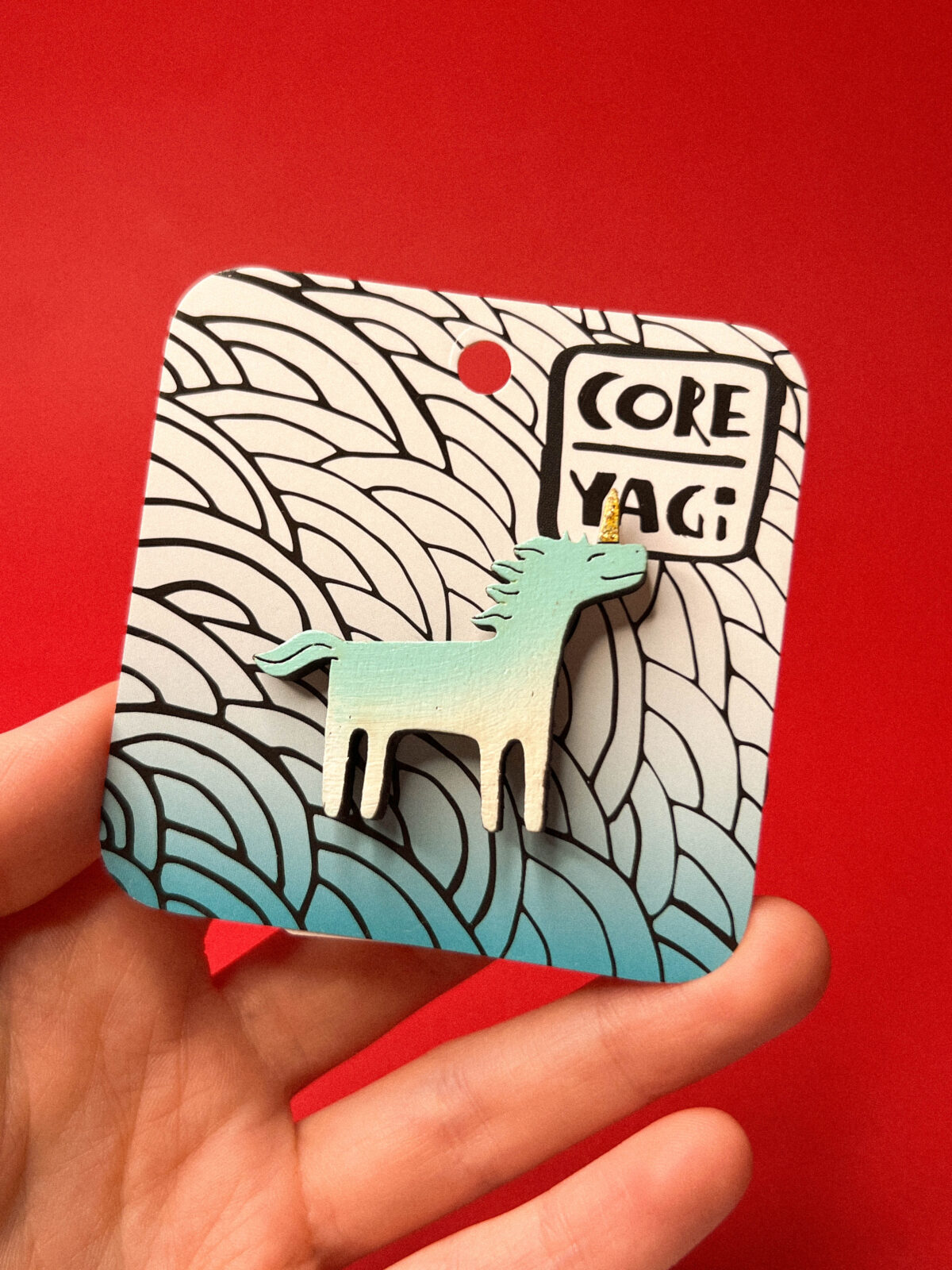 Материал: дерево, ручная роспись, акриловые краски, лак, металлическая застежка‑булавка.