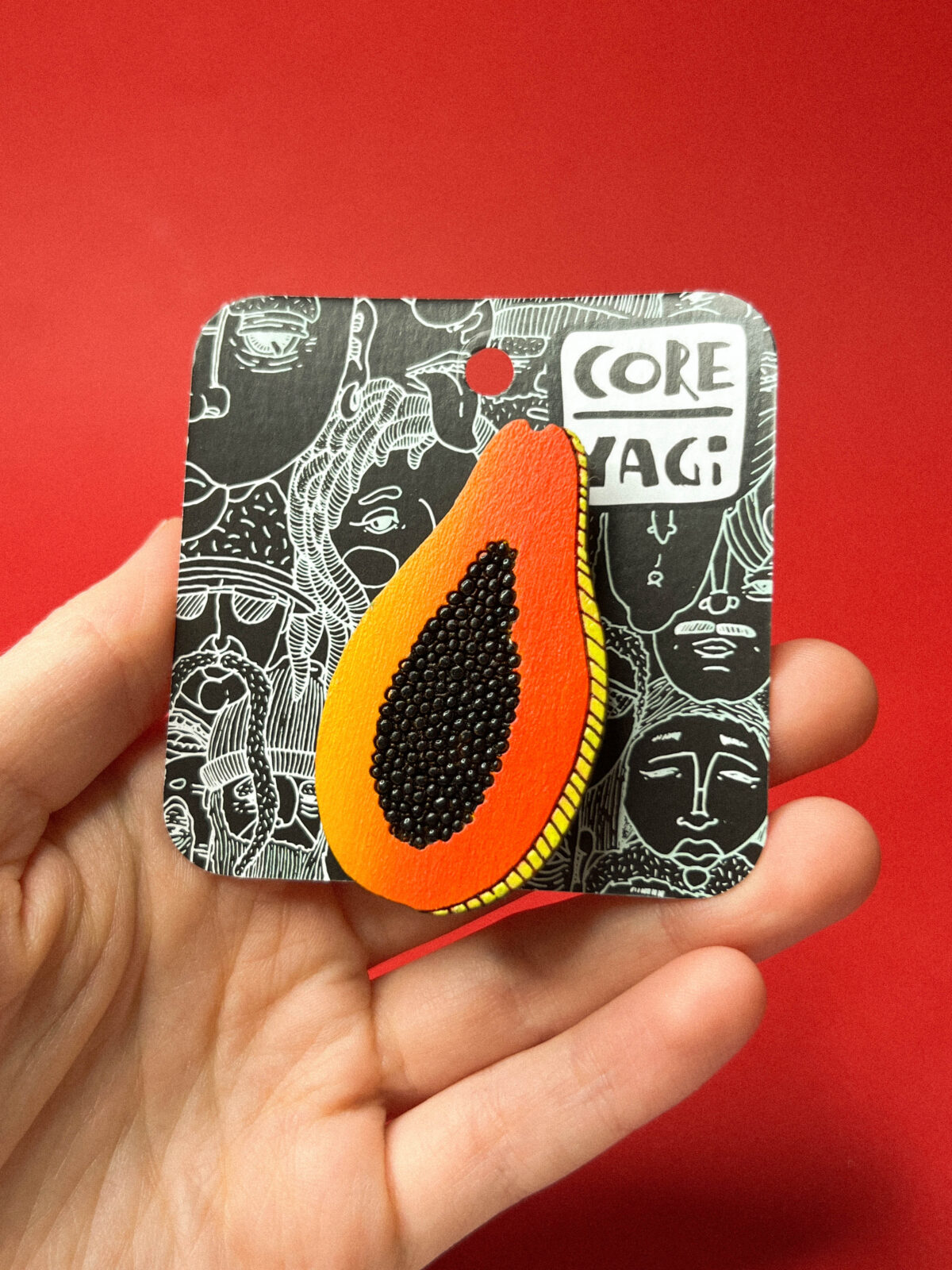 Деревянная брошь с ручной росписью «Папайя», РФ