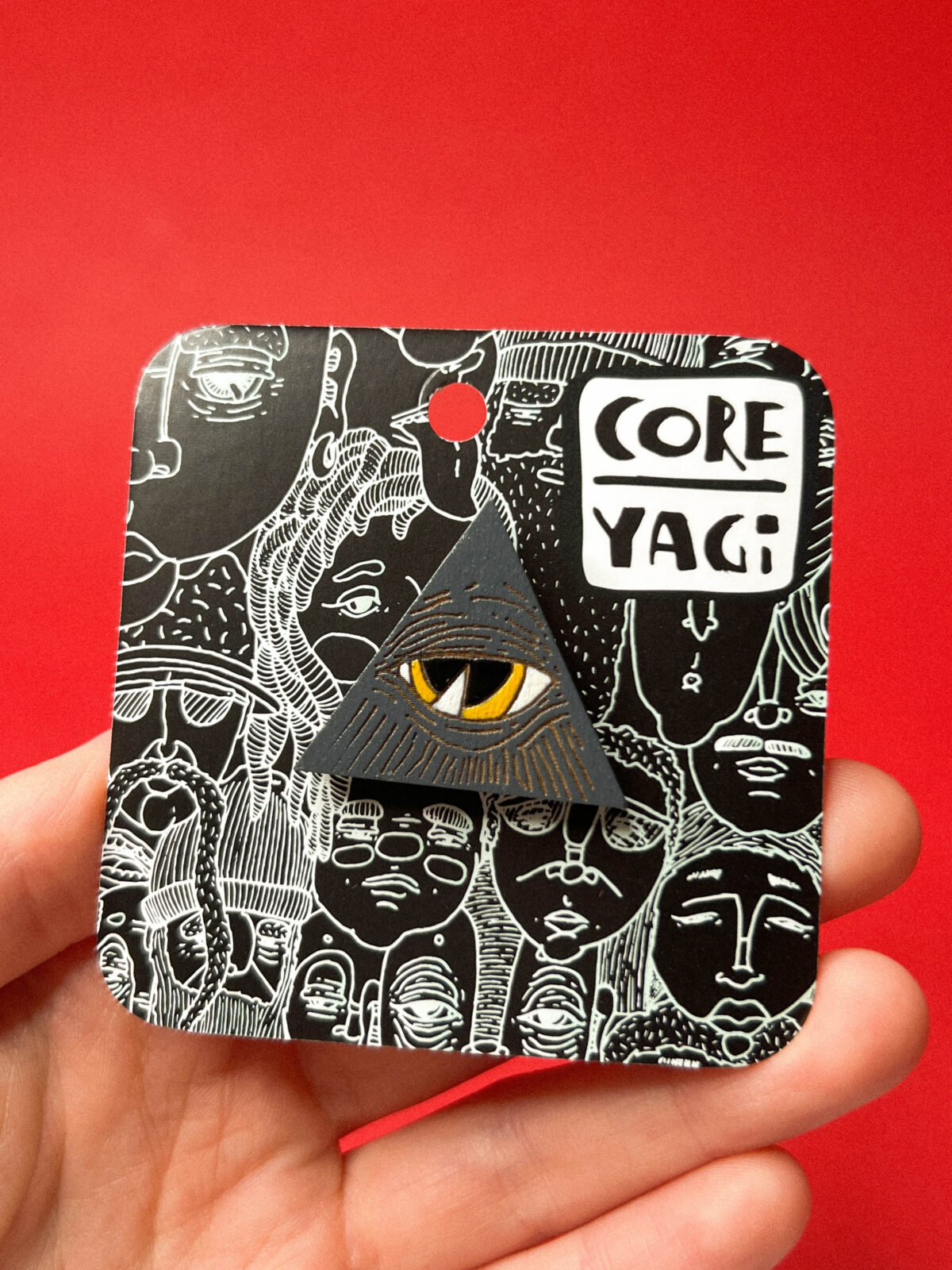 Материал: дерево, ручная роспись, акриловые краски, лак, металлическая застежка‑булавка.