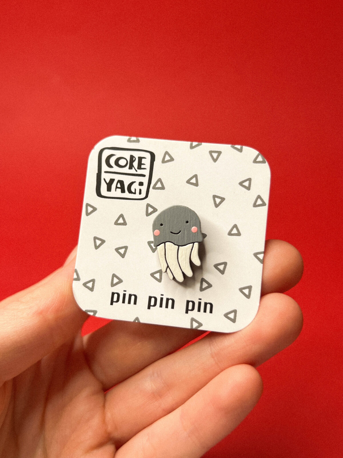 Деревянный пин с ручной росписью «Серая медуза», РФ