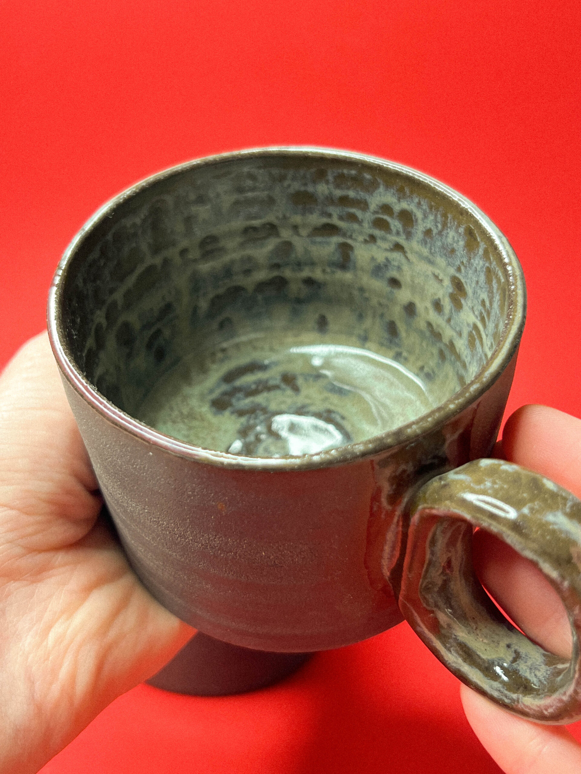 Матовая поверхность снаружи напоминает влажную землю, а внутри – живой рисунок глазури будто отражает небо, утонувшее в мшистом зеркале.