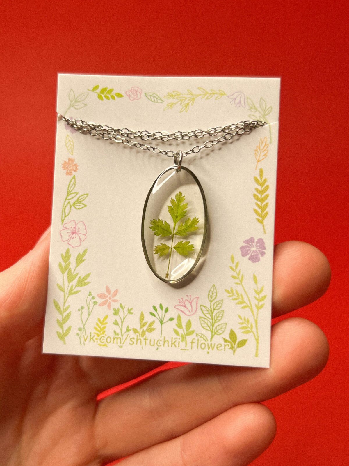 Кулон с сухоцветами в ювелирной смоле «Дыхание зеленого леса», РФ