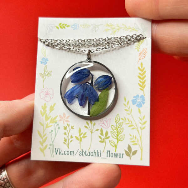Материал: сухоцветы, ювелирная смола, металлические фурнитура из нержавеющей стали.