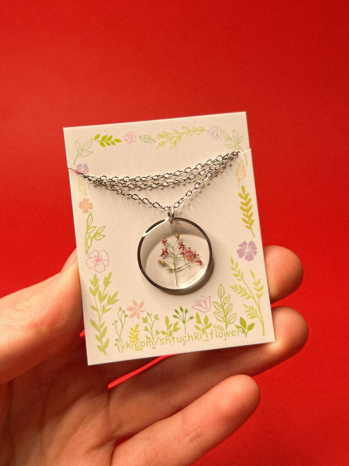 Материал: сухоцветы, ювелирная смола, металлические фурнитура из нержавеющей стали.