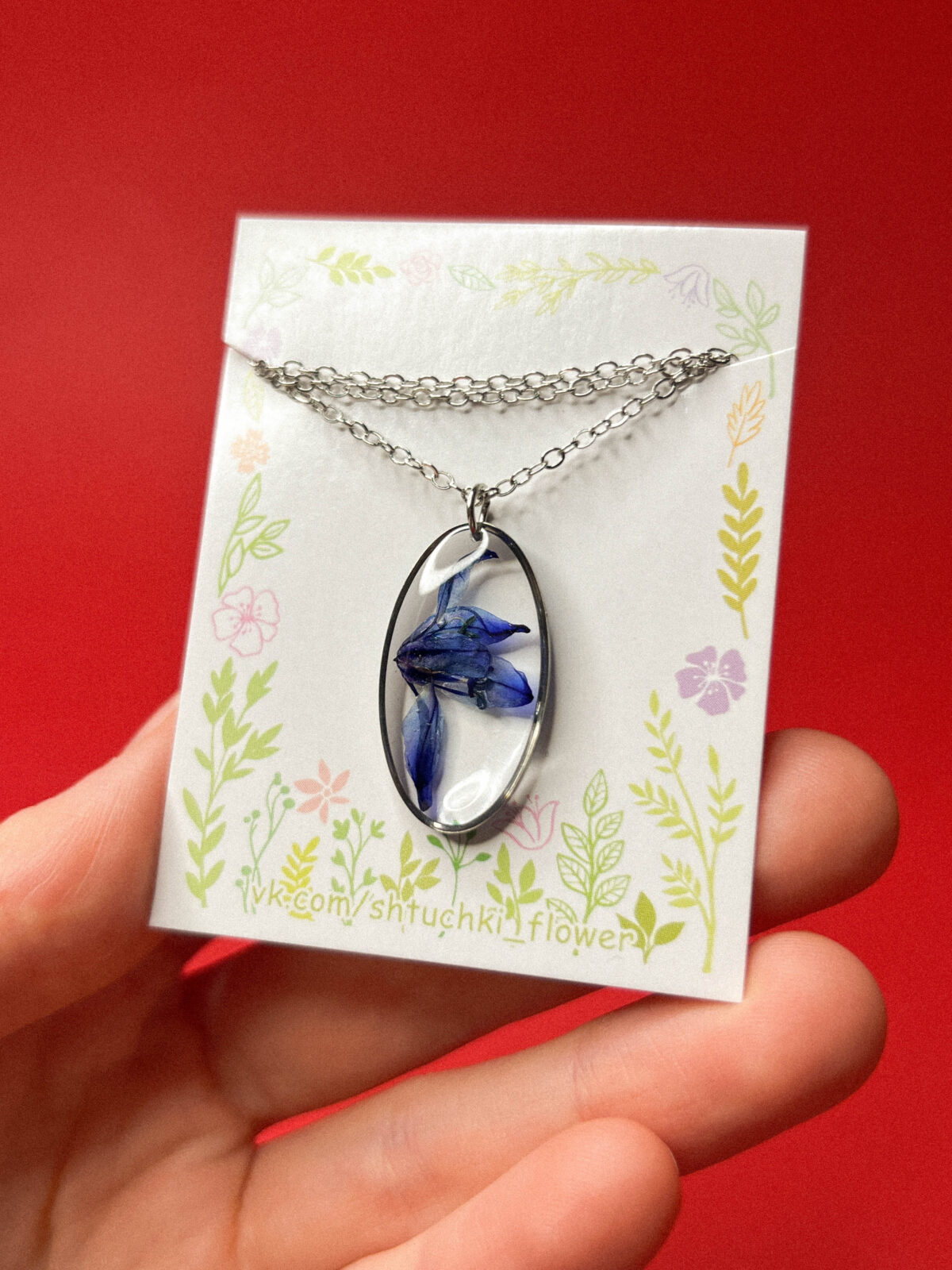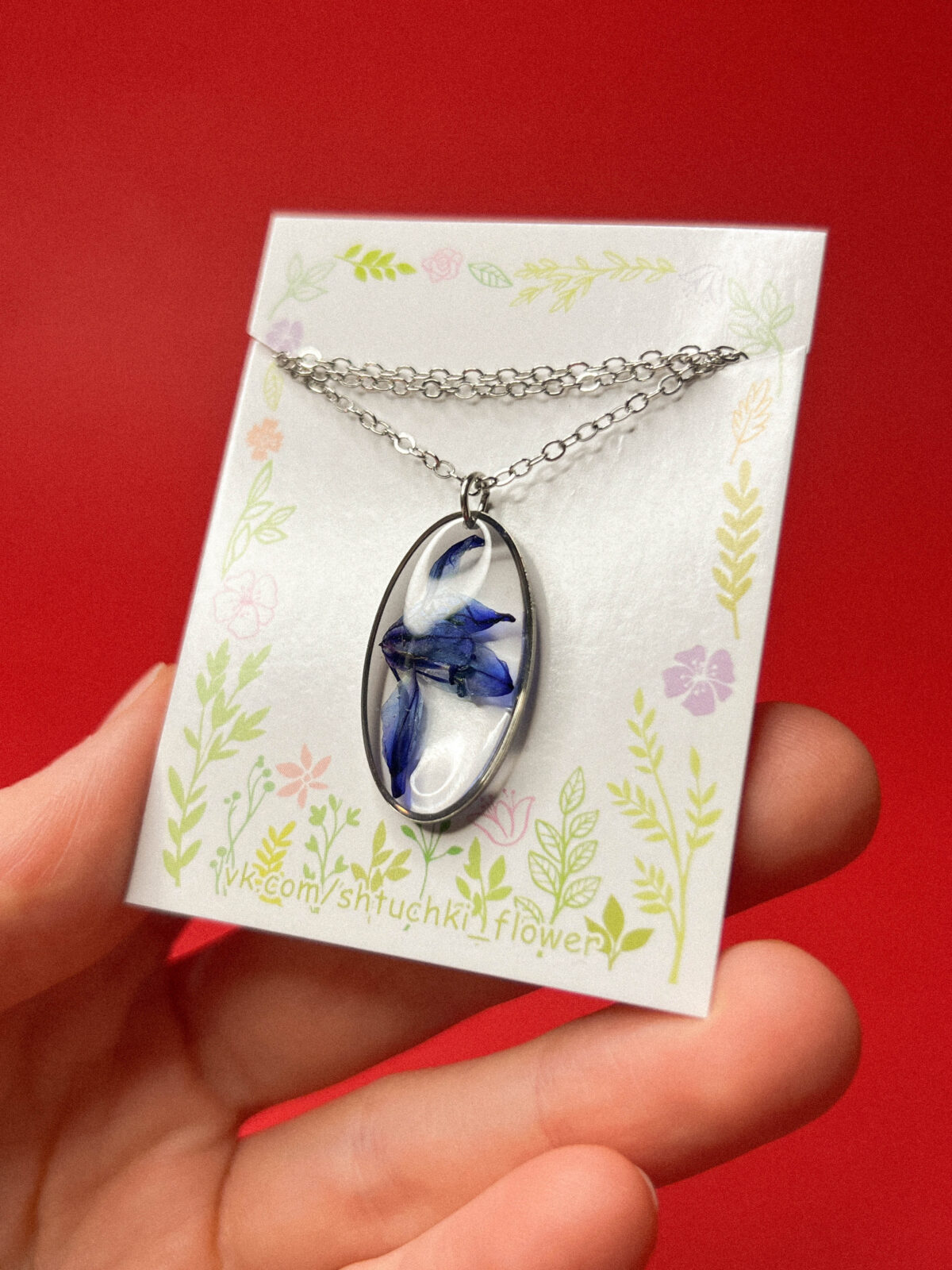 Кулон с сухоцветами в ювелирной смоле «Васильковая дымка», РФ