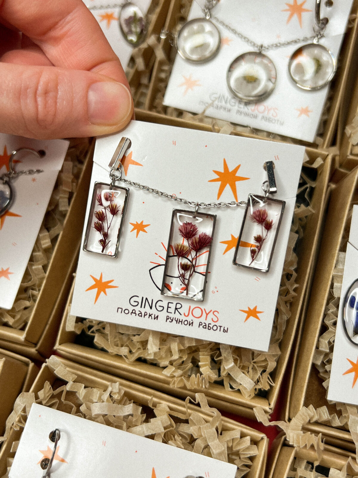 Материал: сухоцветы, ювелирная смола, фурнитура из нержавеющей стали.