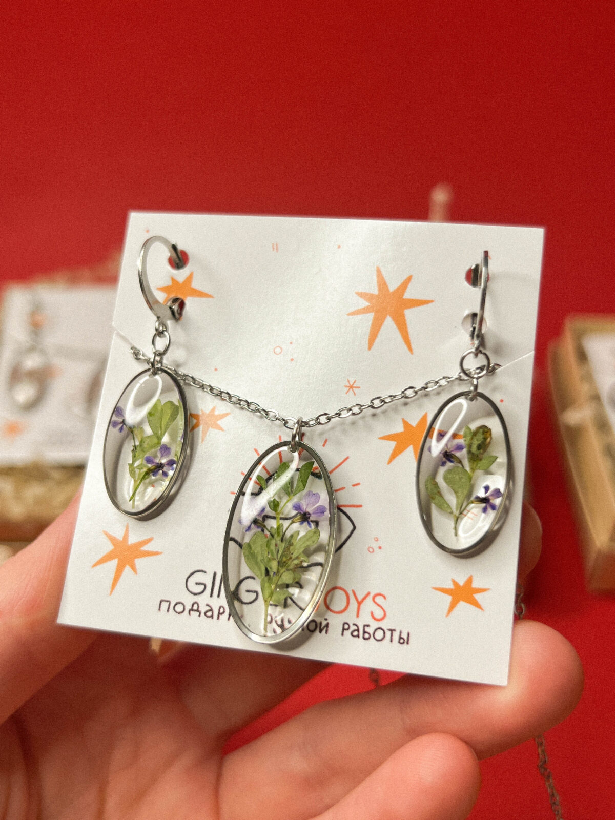 Материал: сухоцветы, ювелирная смола, фурнитура из нержавеющей стали.
