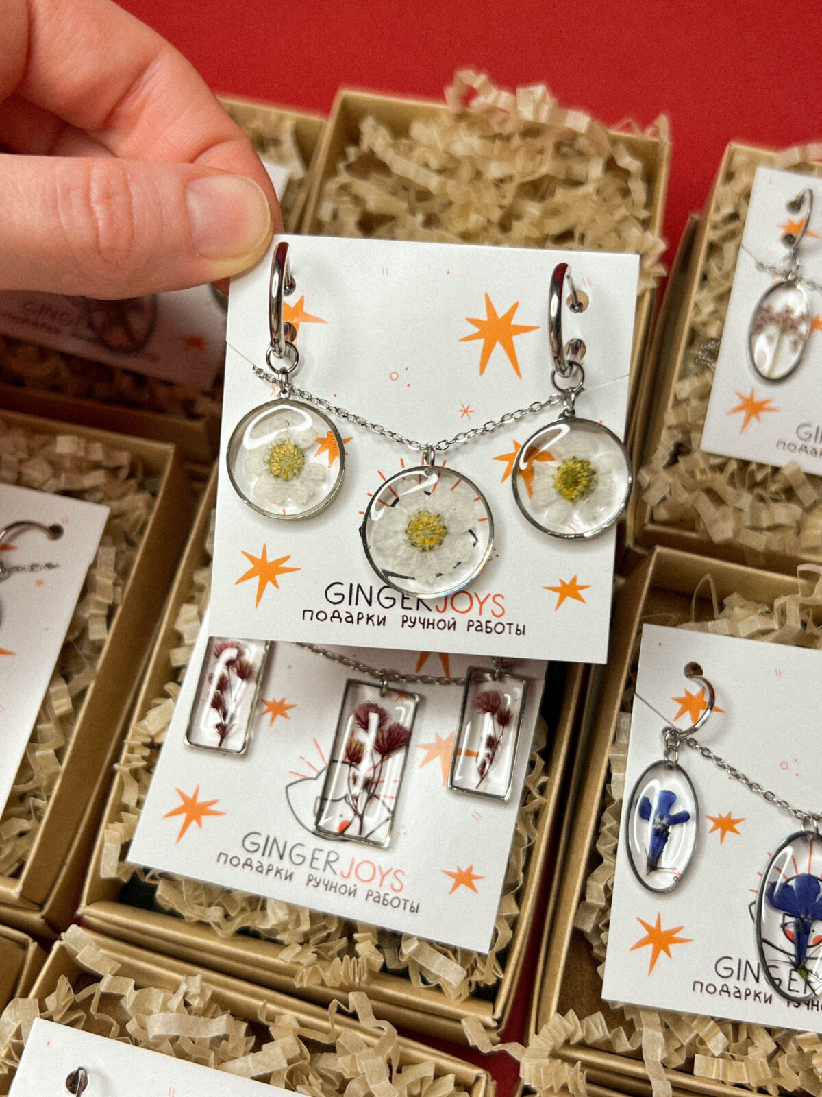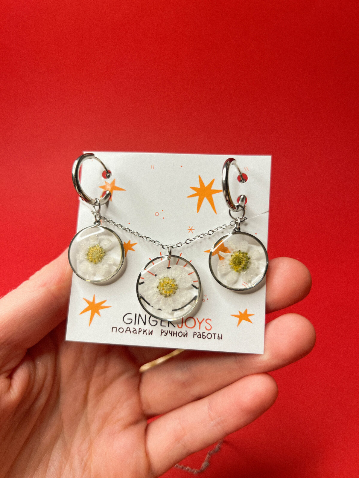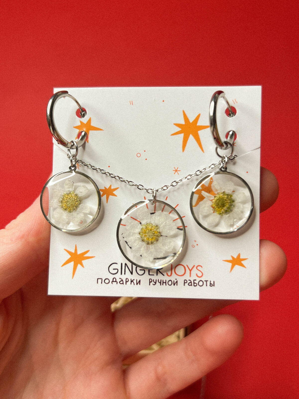 Материал: сухоцветы, ювелирная смола, фурнитура из нержавеющей стали.