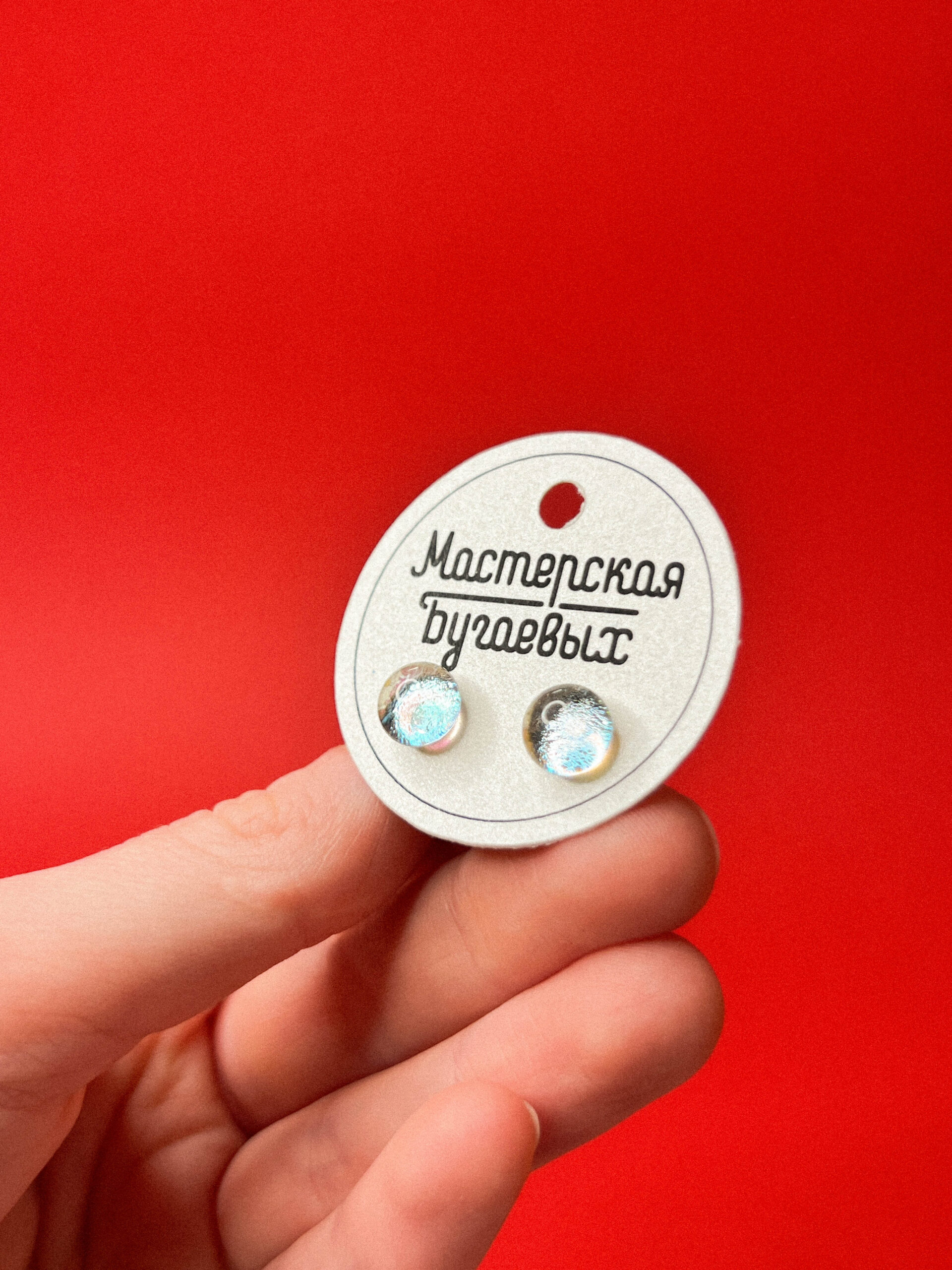 Серьги-гвоздики из дихроического стекла с сиянием белого цвета, № 43, РБ