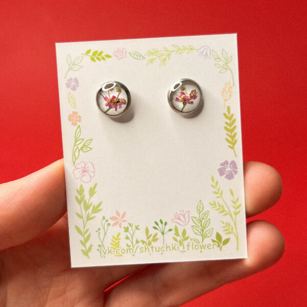 Серьги-гвоздики с сухоцветами в ювелирной смоле «Живая прохлада», РФ