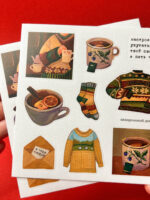 Материал: виниловая пленка с авторским принтом, вырубка по форме каждого стикера.