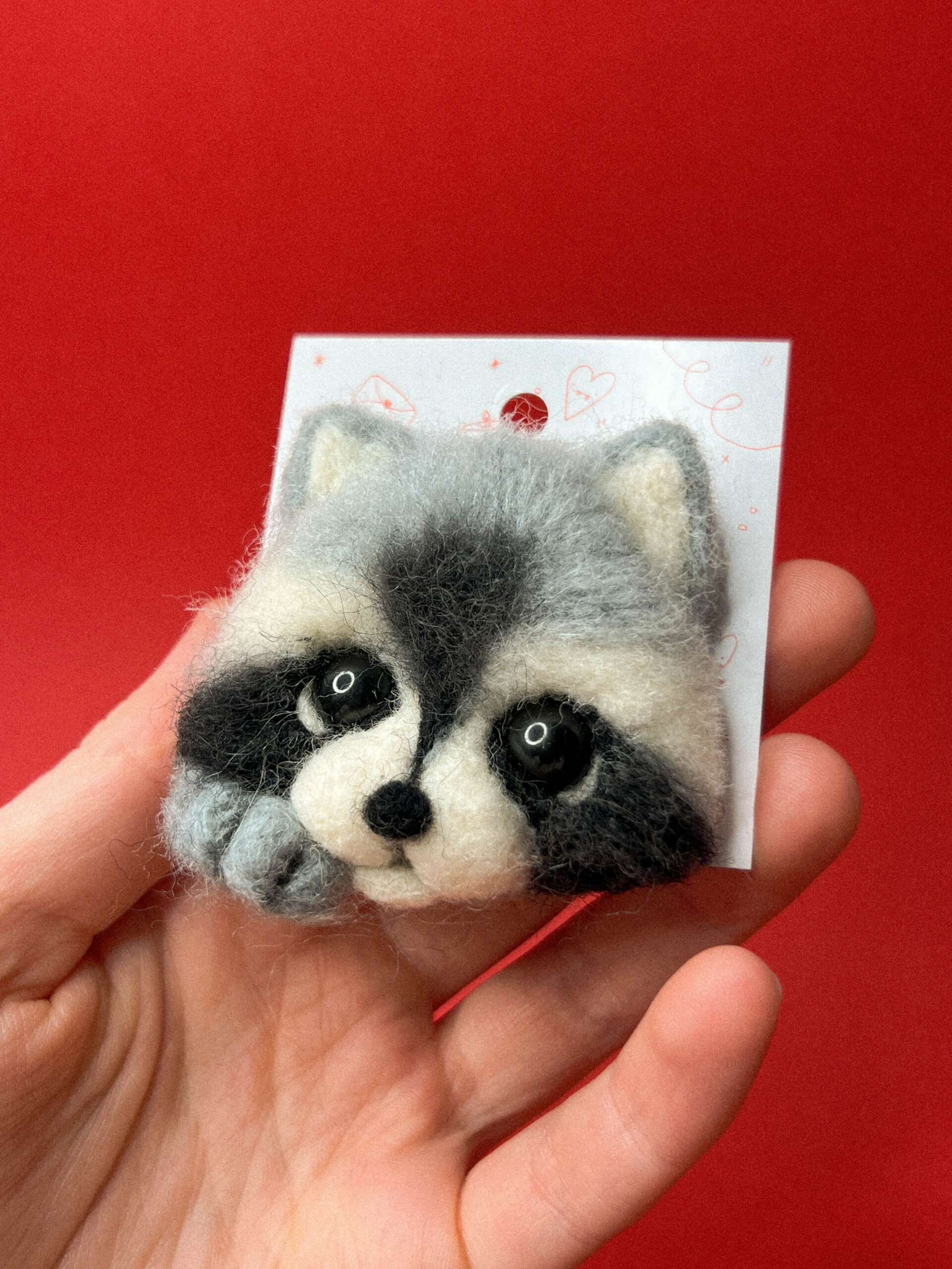 Валяная брошь «Енот серо-голубой», шерсть, РФ