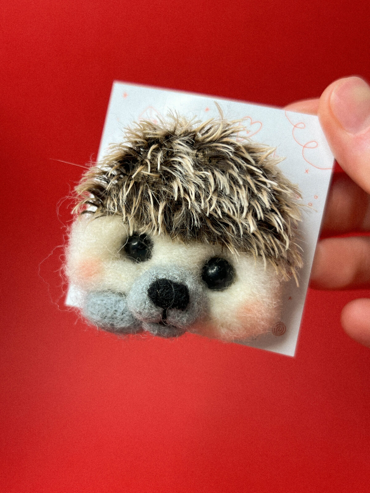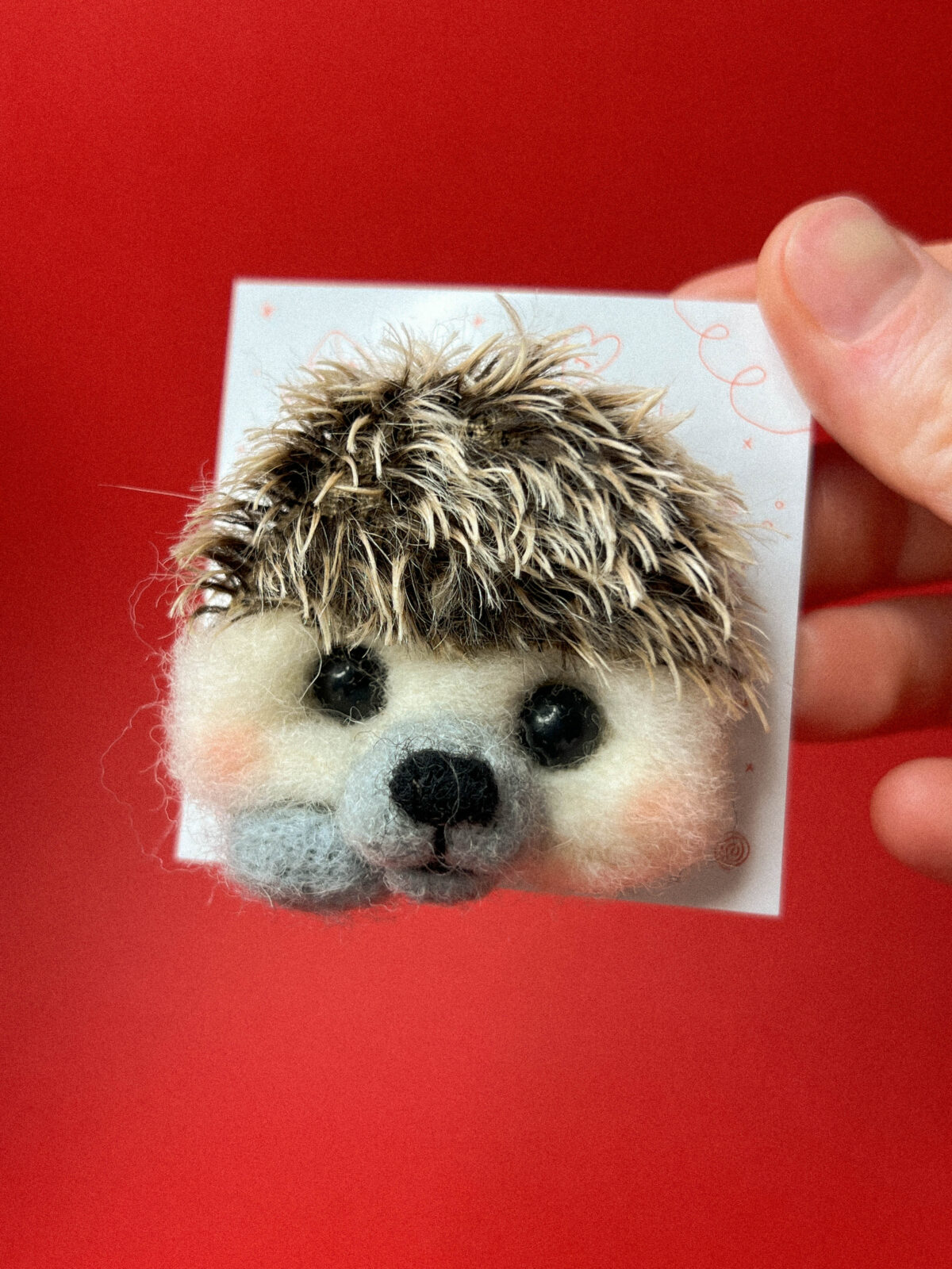 Валяная брошь «Ежик с розовыми щечками», шерсть, РФ