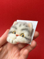 Валяная брошь «Котенок белый с серыми полосочками», шерсть, РФ