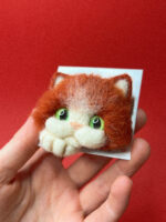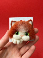 Валяная брошь «Котенок темно-рыжий с белой мордочкой», шерсть, РФ