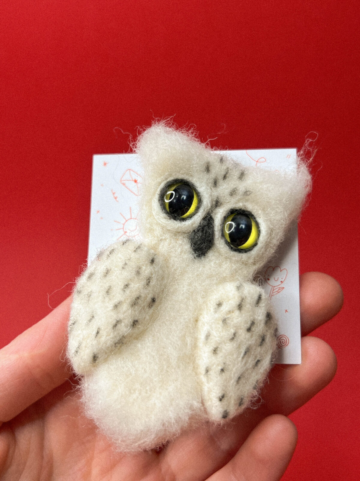 Валяная брошь «Сова белая», шерсть, РФ