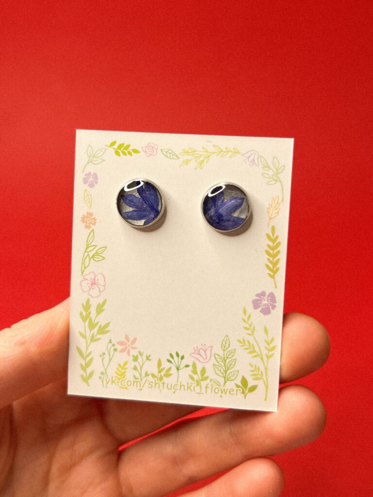Серьги-гвоздики с сухоцветами в ювелирной смоле «Синий сад», РФ