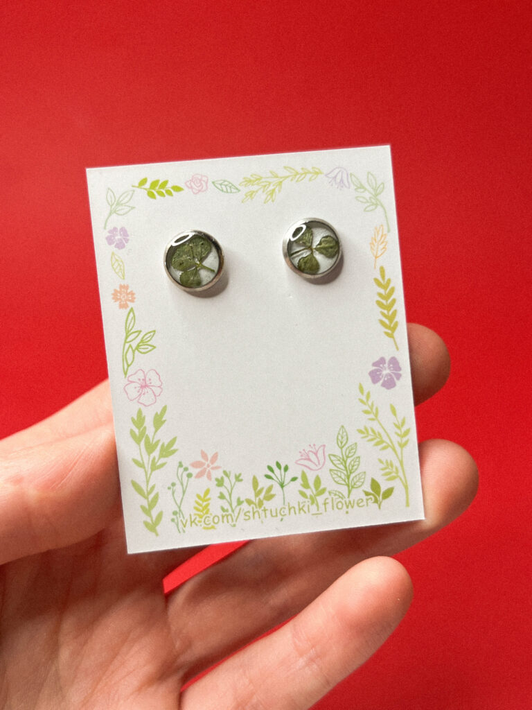 Серьги-гвоздики с сухоцветами в ювелирной смоле «Вечность в зелени», РФ
