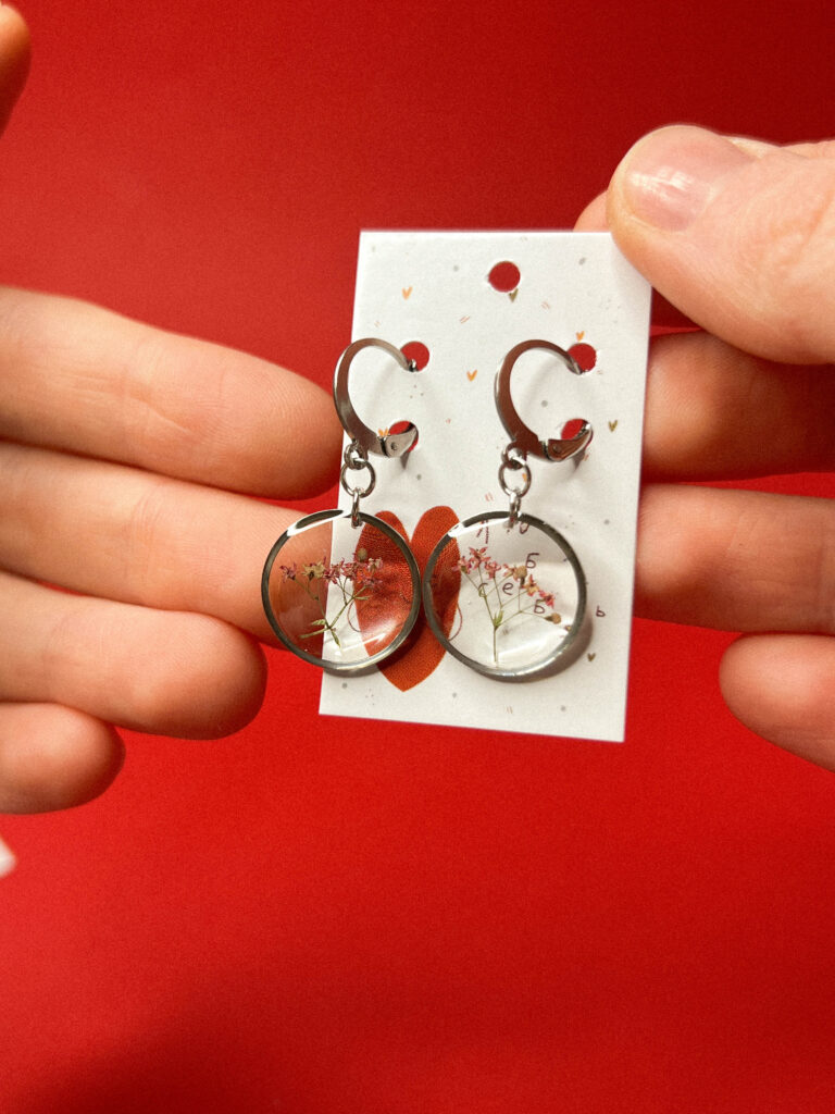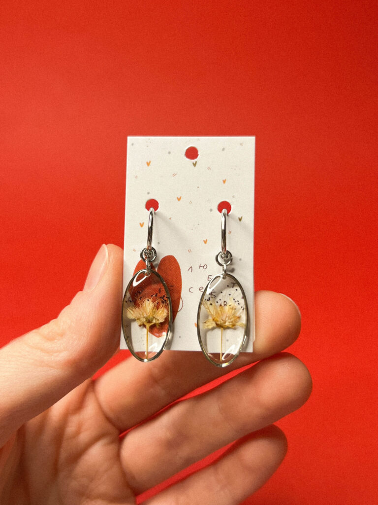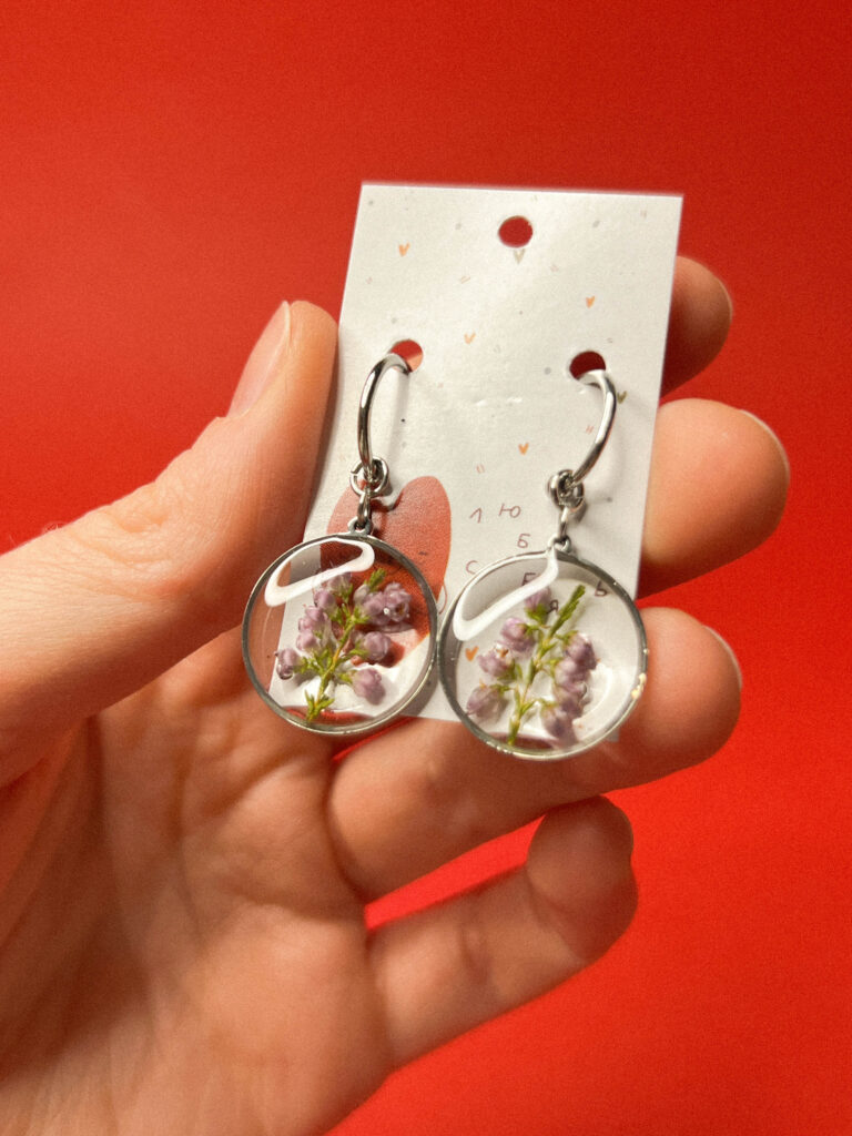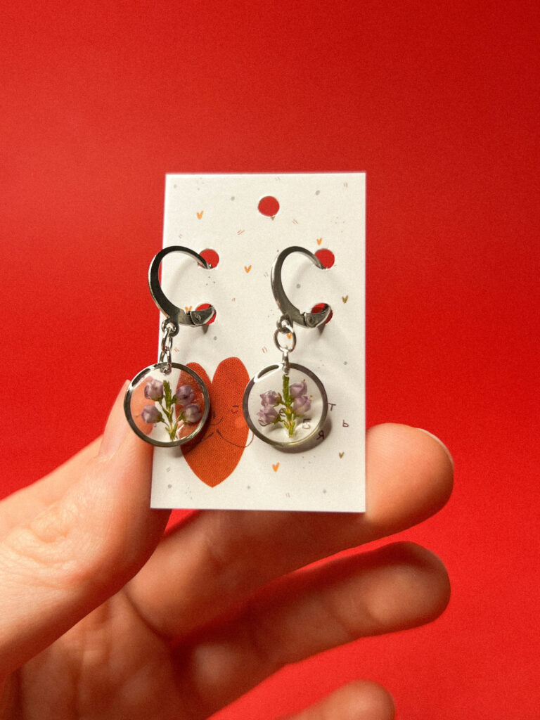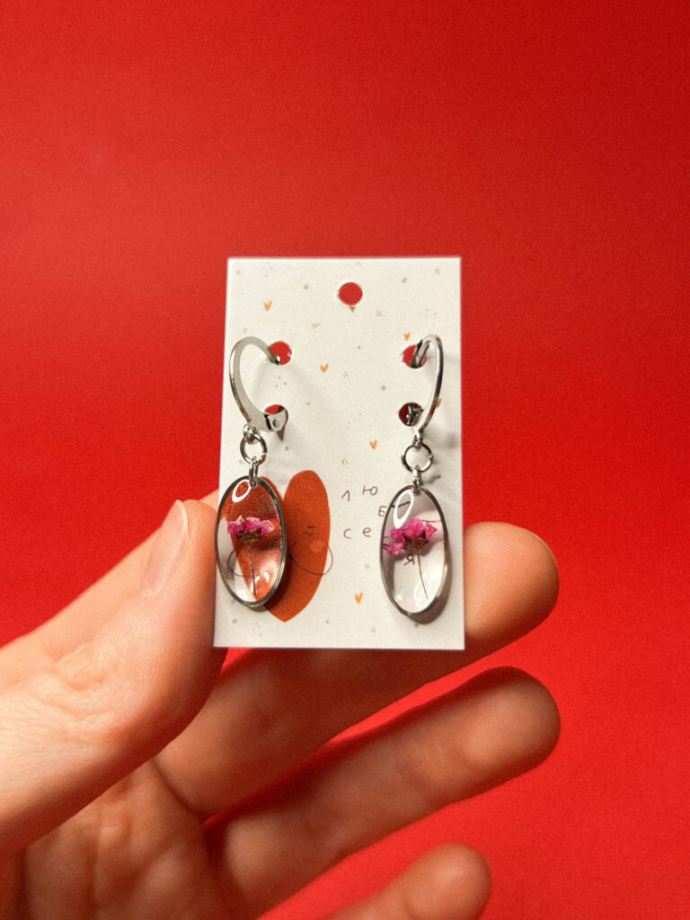 Серьги-окошки с сухоцветами в ювелирной смоле «Танец лепестков», РФ