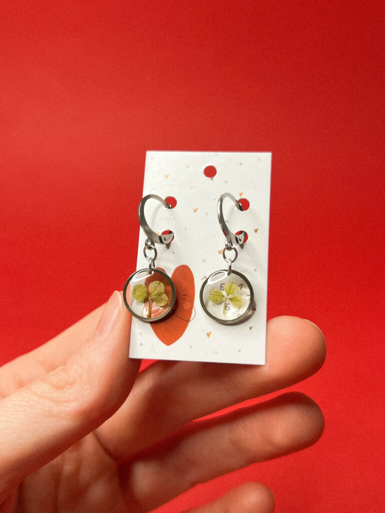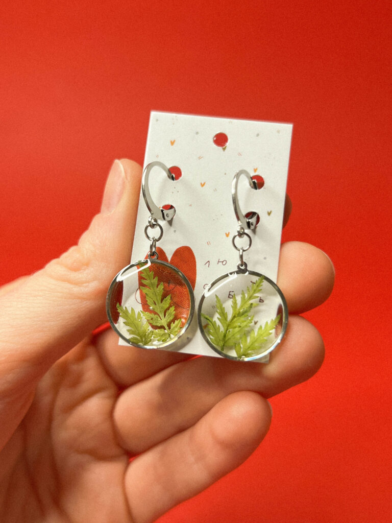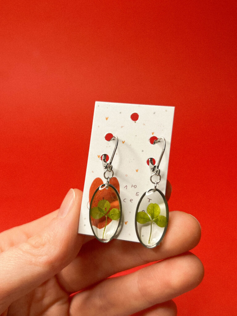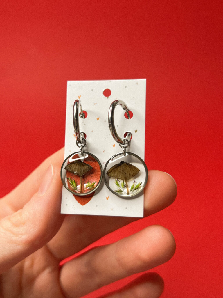 Большие серьги-окошки с сухоцветами в ювелирной смоле «Секрет под листом», РФ