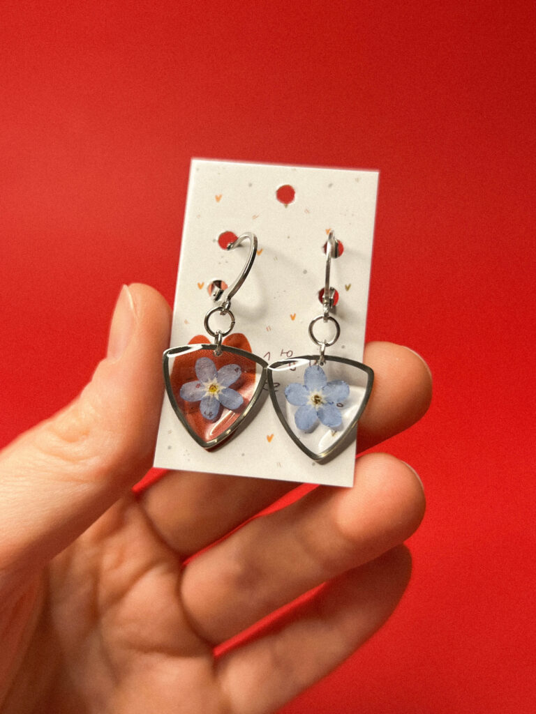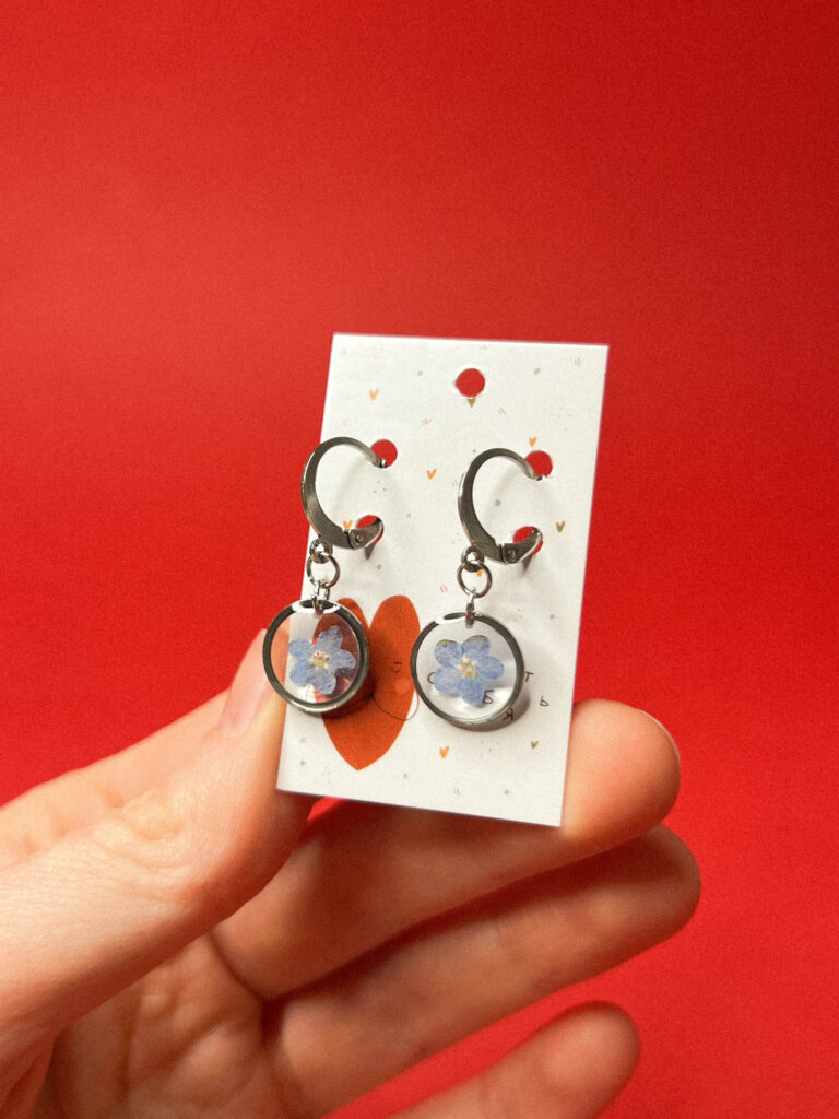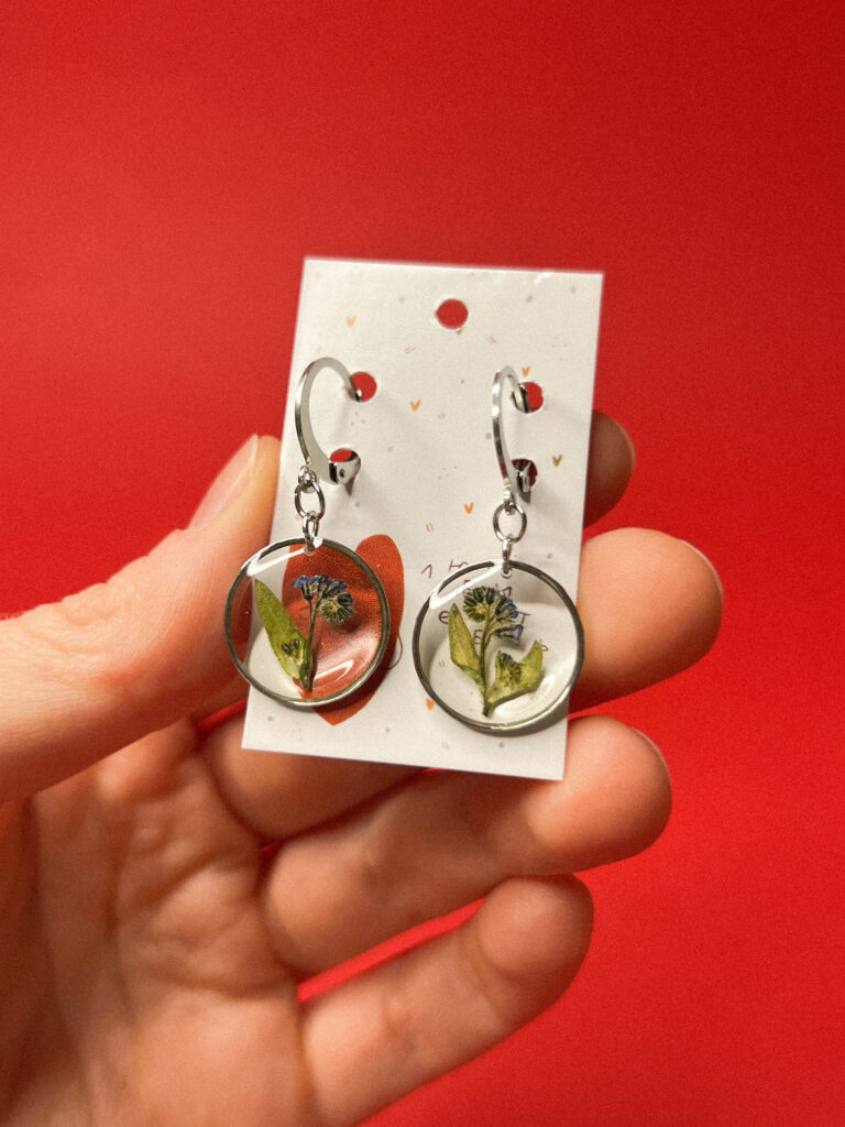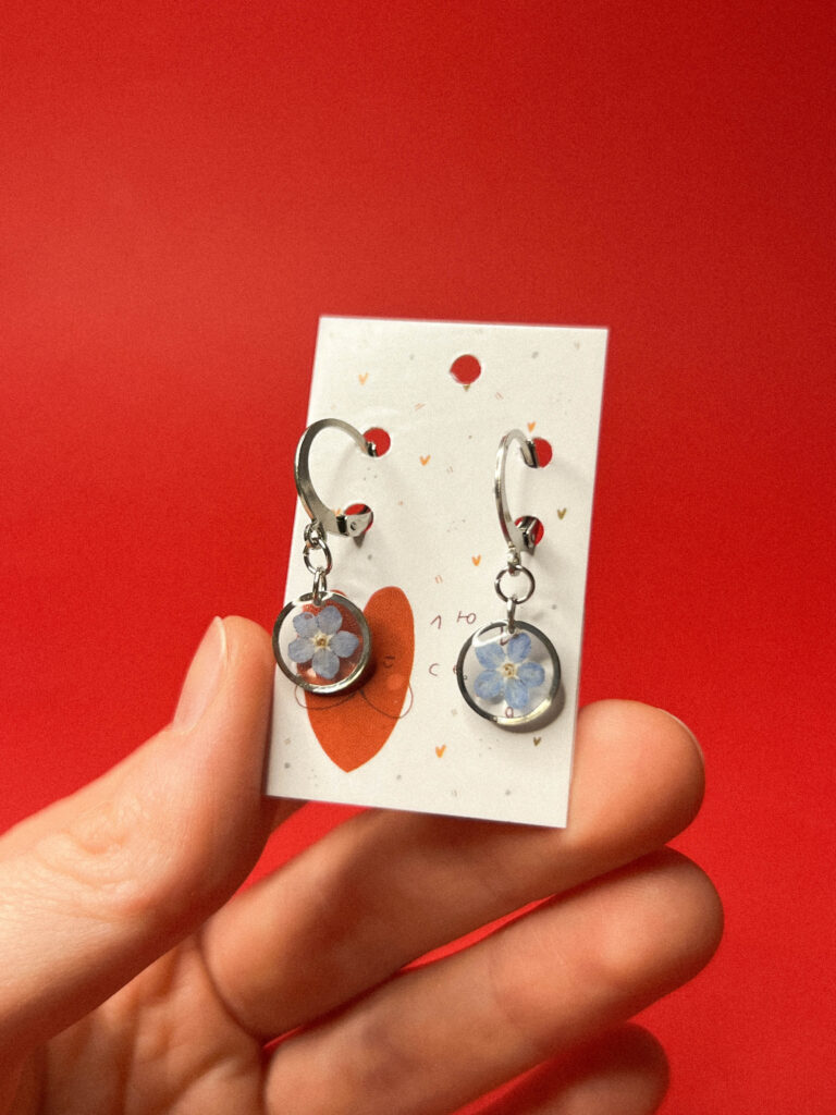 Серьги-окошки с сухоцветами в ювелирной смоле «Незабудковый ветер», РФ