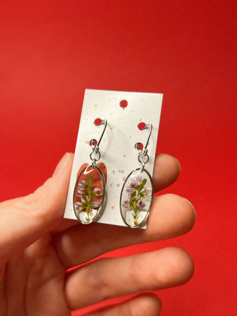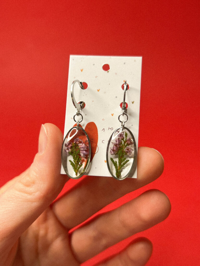 Большие серьги-окошки с сухоцветами в ювелирной смоле «Сердце трав», РФ