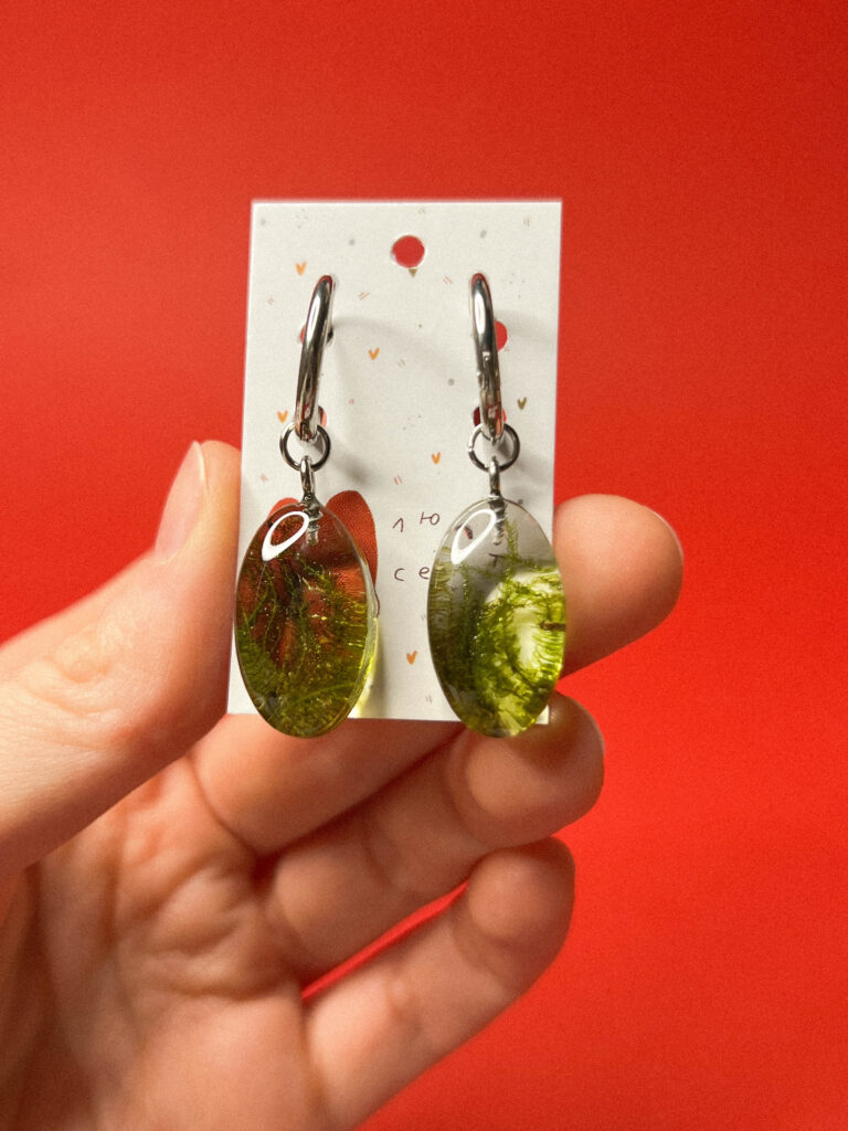 Большие серьги-окошки с сухоцветами в ювелирной смоле «Мхи и чудеса», РФ