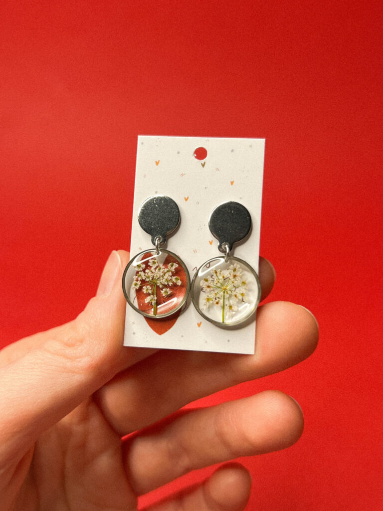 Большие серьги-окошки с сухоцветами в ювелирной смоле «Венок тишины», РФ