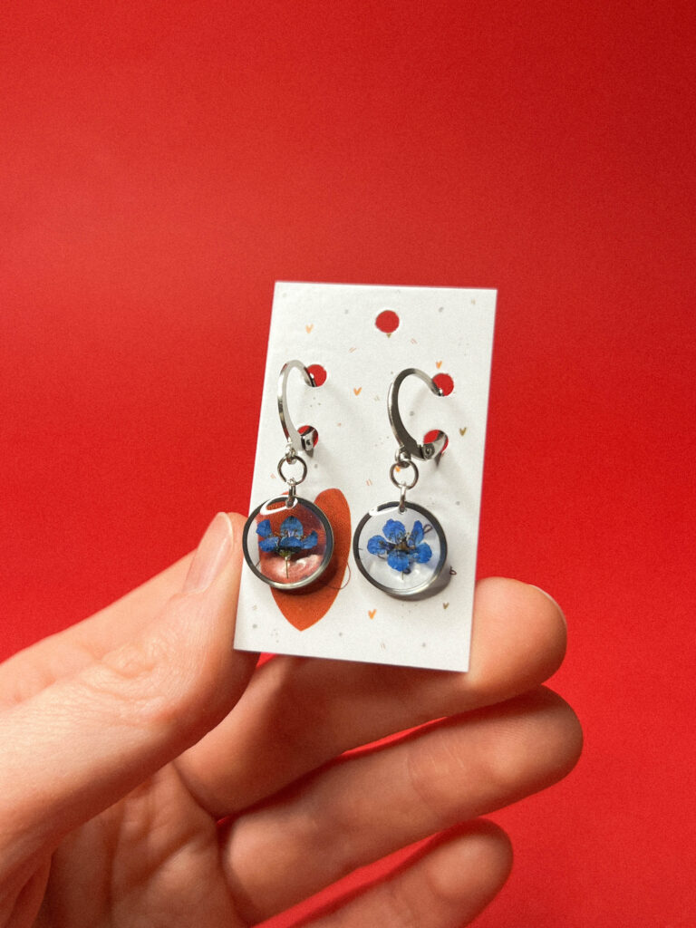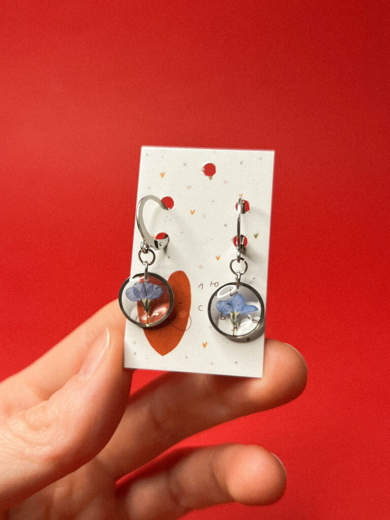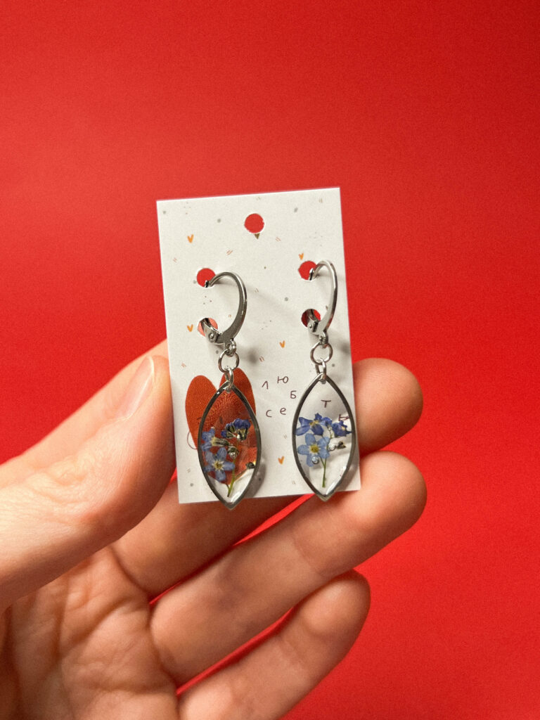 Серьги-окошки с сухоцветами в ювелирной смоле «Хрупкость синевы», РФ