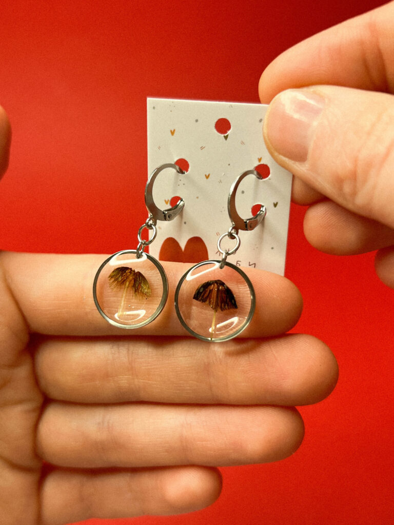 Большие серьги-окошки с сухоцветами в ювелирной смоле «Хранитель полянки», РФ