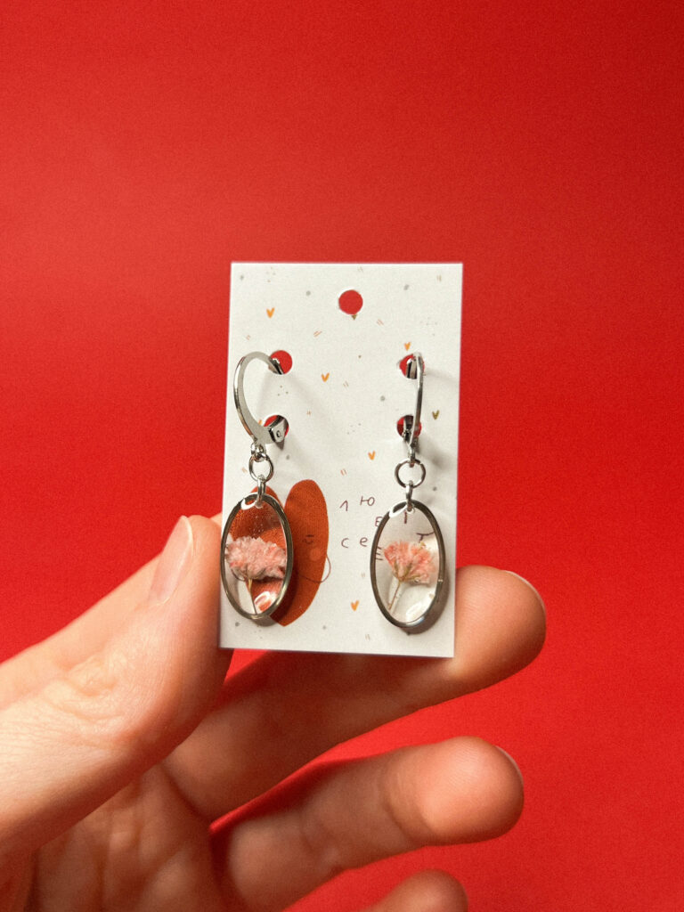 Большие серьги-окошки с сухоцветами в ювелирной смоле «Сон в румянце», РФ