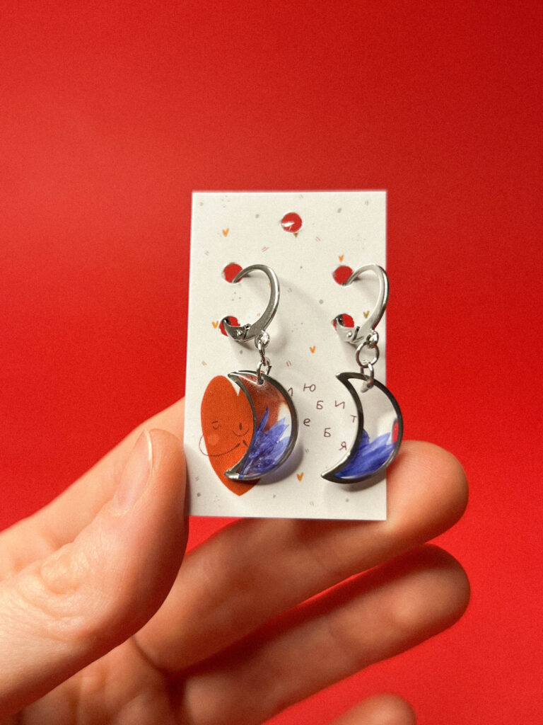 Большие серьги-окошки с сухоцветами в ювелирной смоле «Луна в ночи», РФ