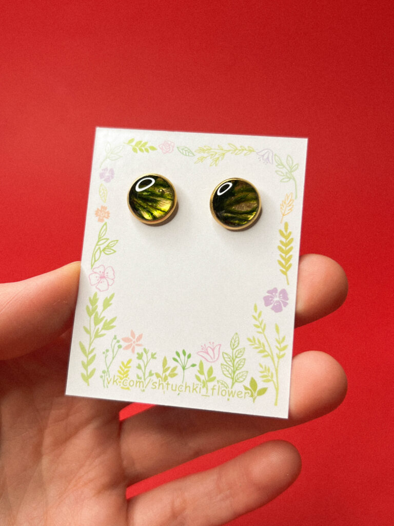 Серьги-гвоздики с сухоцветами в ювелирной смоле «Вечность в зелени», РФ