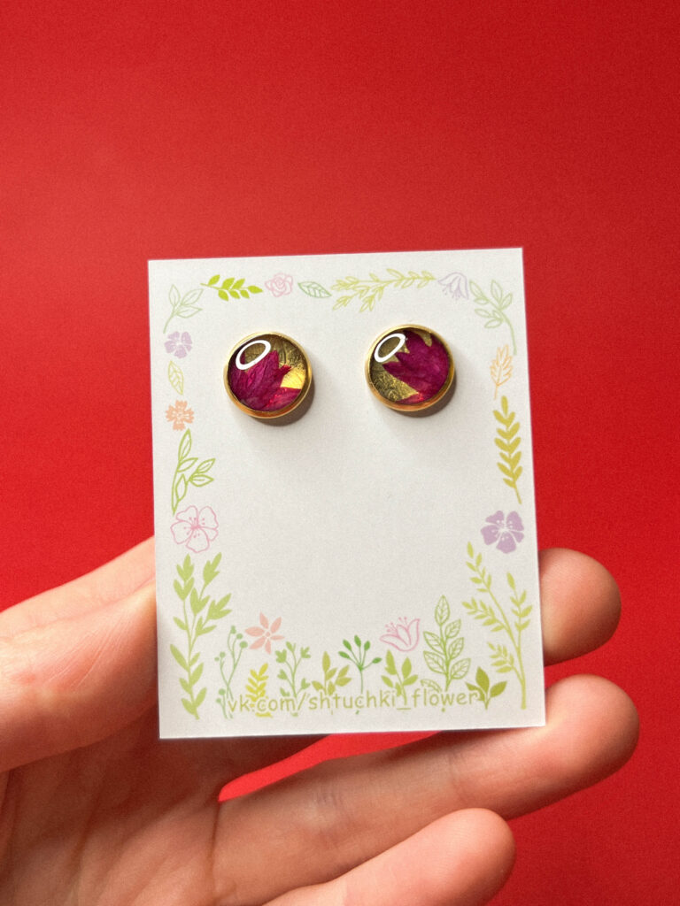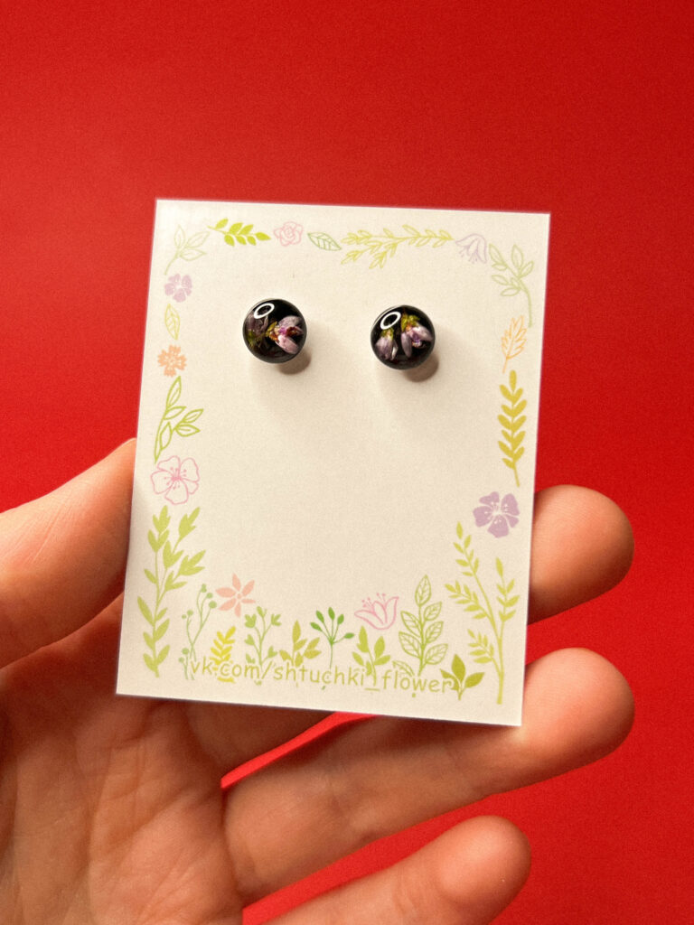 Серьги-гвоздики с сухоцветами в ювелирной смоле «Цветы в ночи», РФ