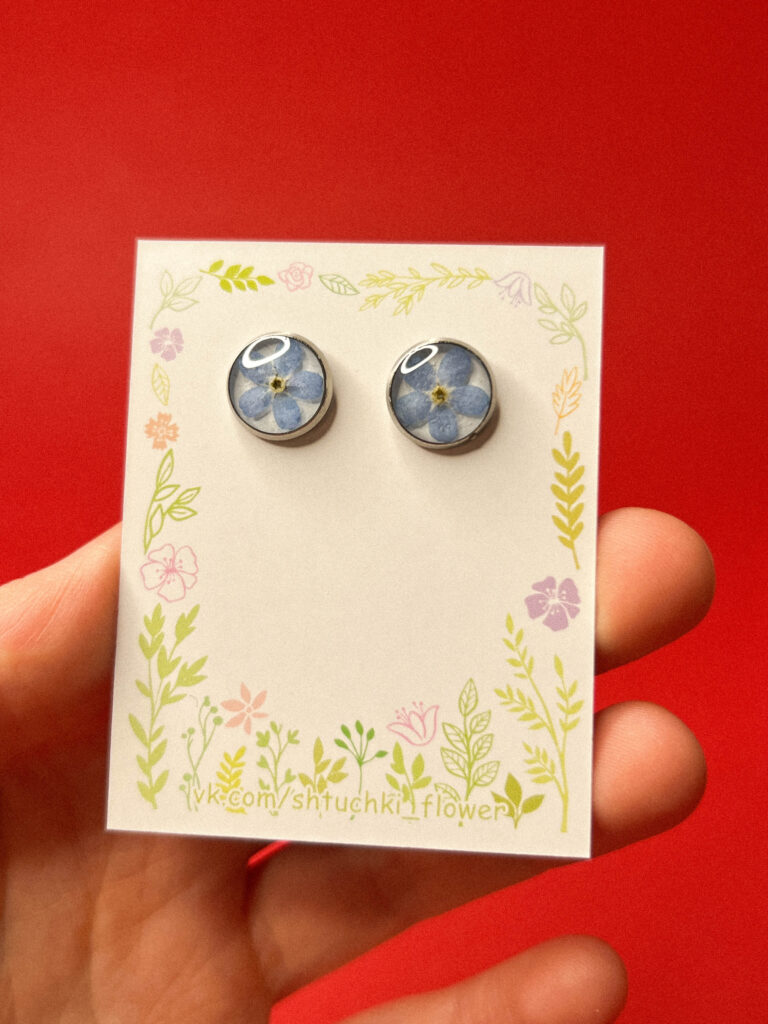 Серьги-гвоздики с сухоцветами в ювелирной смоле «Небесное цветение», РФ