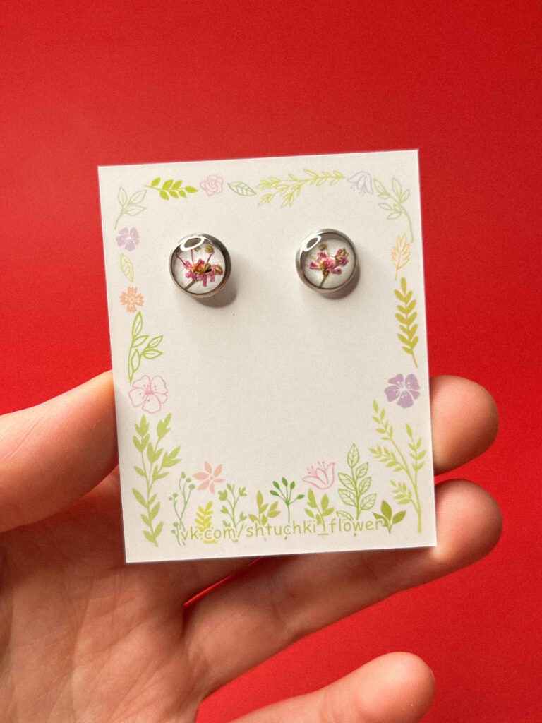 Серьги-гвоздики с сухоцветами в ювелирной смоле «Вишневое цветение», РФ