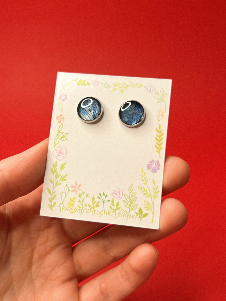 Серьги-гвоздики с сухоцветами в ювелирной смоле «Синие жемчужины», РФ